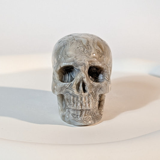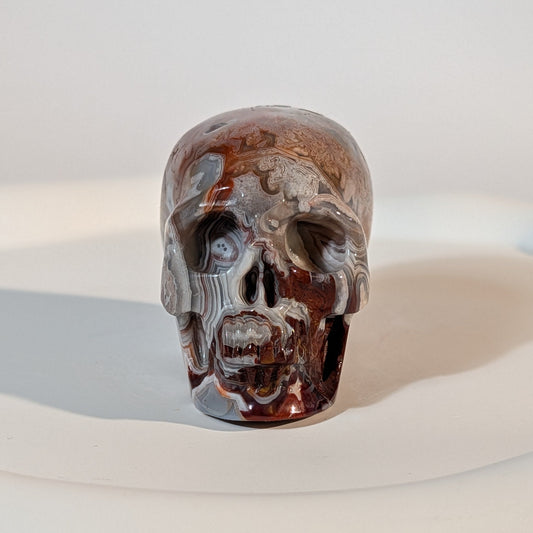Kristallschädel "Jerald" – Crazy Lace Achat (85g) | Pure Dynamik