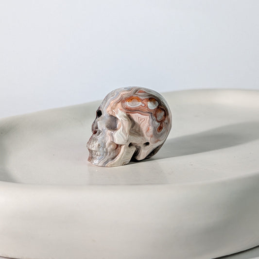 Mini-Kristallschädel "Ragna" | Crazy Lace Achat (41g) | Freude & Flow