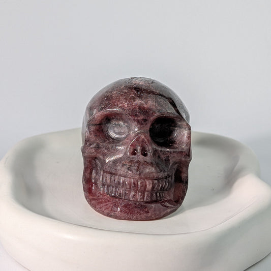 Kristallschädel "Herion" | Erdbeerquarz (501g) | Lebensfreude & Herzöffnung