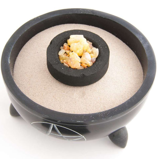 Speckstein Kessel Pentagramm | Ritualschale Schwarz | Schutz Magie
