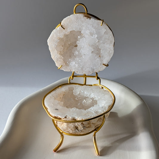 Bergkristall Geode auf Goldständer | Meisterheiler & Deko (6-7cm)