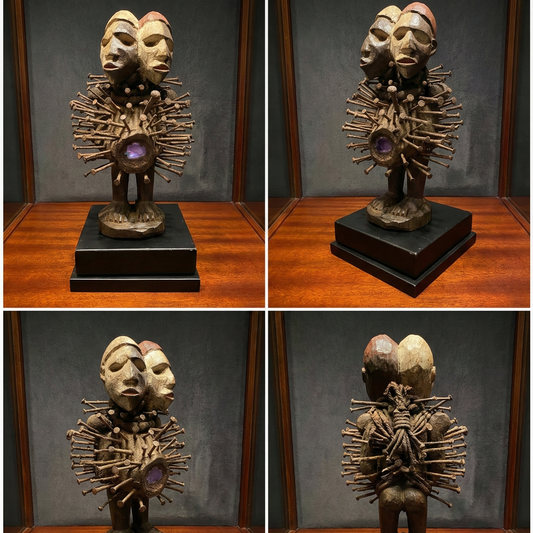 Nkisi Nkonde Kraftfigur | Januskopf Fetisch | Kongo Vintage 1960er