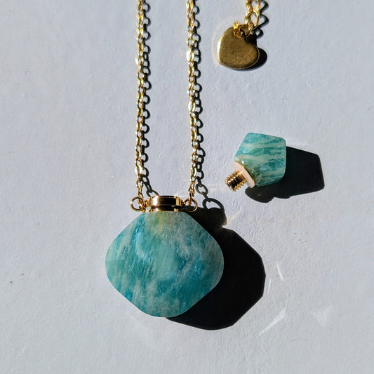 Amazonit Flaschenhalskette Gold | Magische Öle
