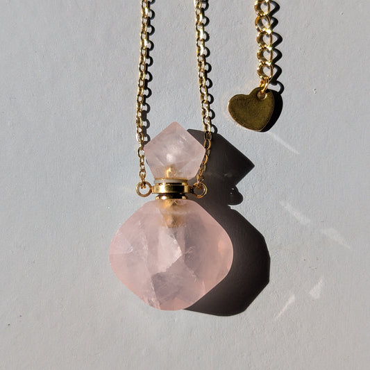 Rosenquarz Flaschenhalskette Gold | Liebesenergie