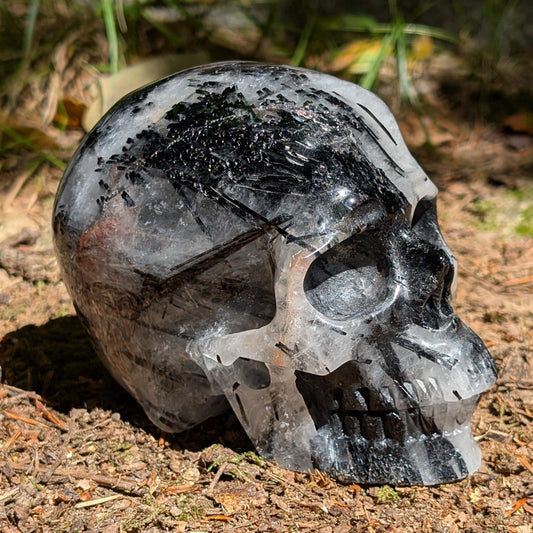 Kristallschädel "Schattenhüter" Turmalin-Quarz (1,23kg)