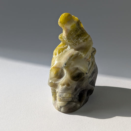 Kristallschädel "Theuth" Serpentin mit Eidechse (140g) | Schutz