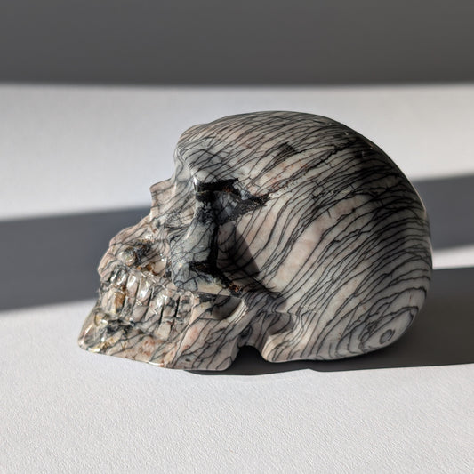 Kristallschädel "Townguard" Kalkstein (360g) | Zebra | Balance