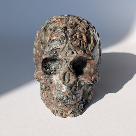 Gravierter Monzonit Schädel "Wächter der Pfade" (494g) | Balance