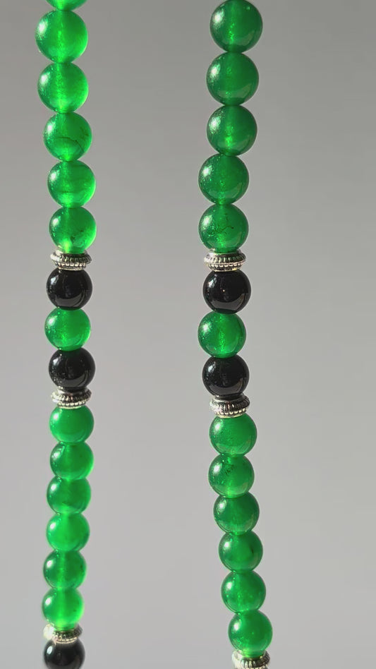 Kaiserliche Dzi Halskette (9 Augen) | Smaragd & Obsidian | Reichtum