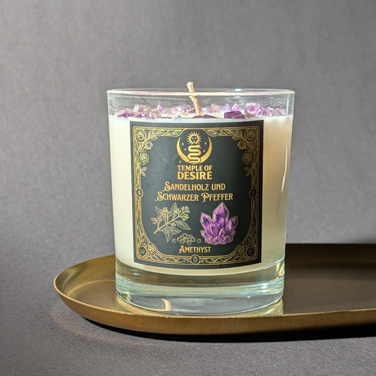 Kristall-Duftkerze "Amethyst" | Sandelholz & Schwarzer Pfeffer | 600g