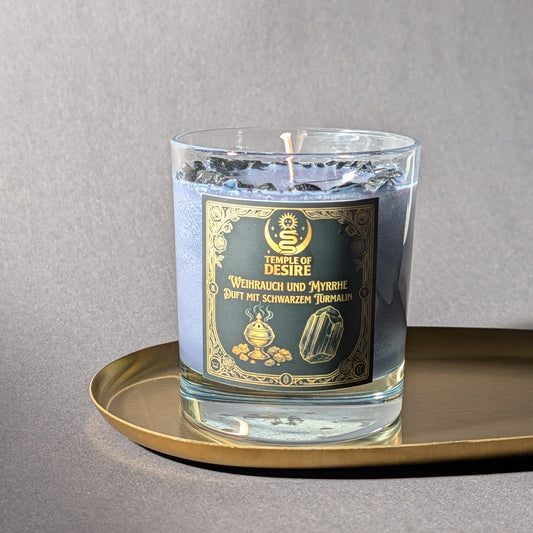 Kristall-Duftkerze "Schwarzer Turmalin" | Weihrauch & Myrrhe | 600g