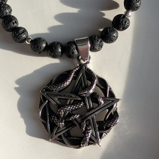 Wicca Pentagramm Kette | Lavastein & Silber | Hoher Schutz