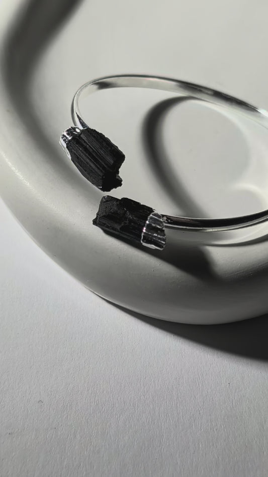 Schwarzer Turmalin Armreif | Silber | Schutz & Erdung