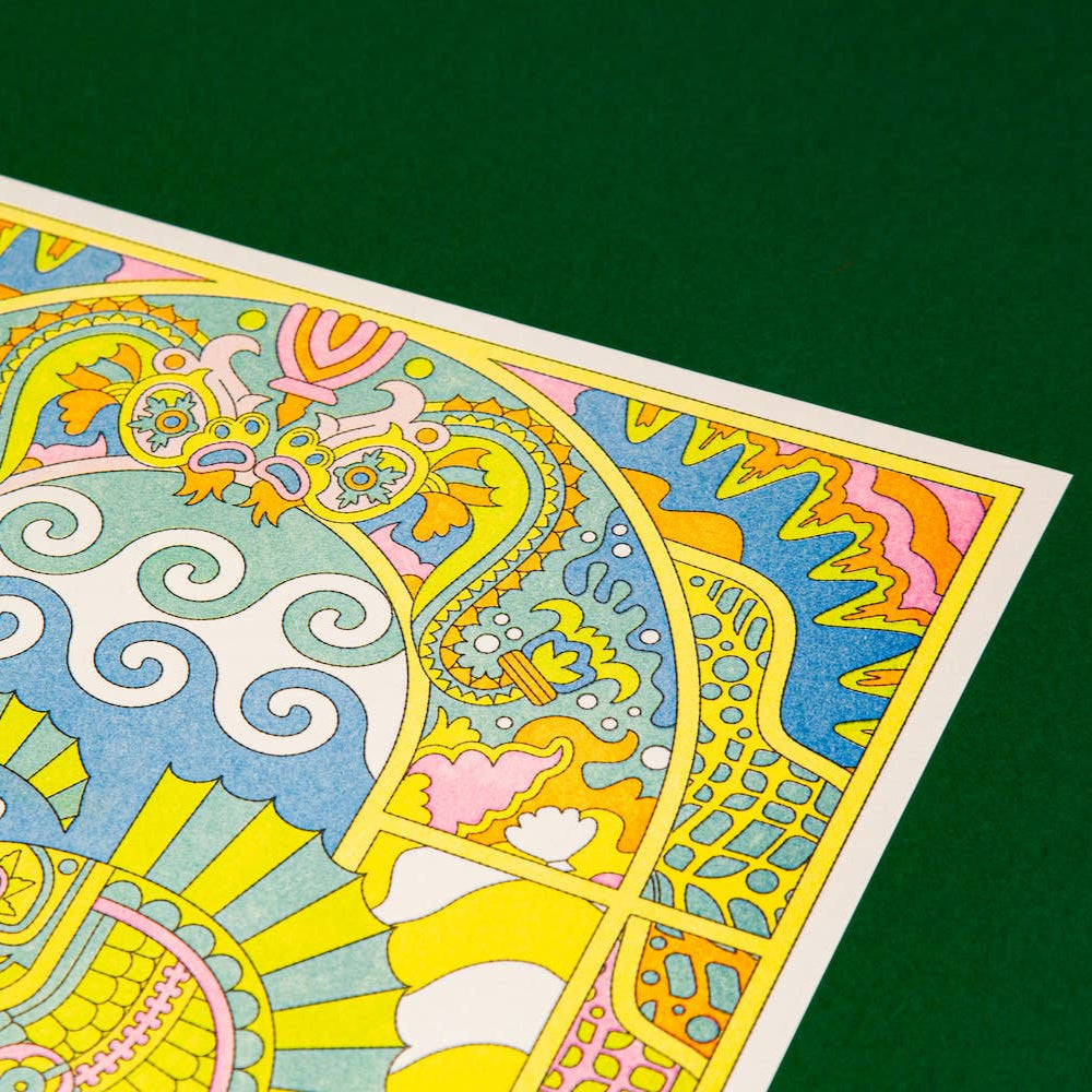 Die Risografie ist ein Druckverfahren, das für seine leuchtenden Farben, seine umweltfreundliche Natur und die einzigartige, leicht strukturierte Oberfläche bekannt ist, die den Drucken einen besonderen künstlerischen Charakter verleiht.