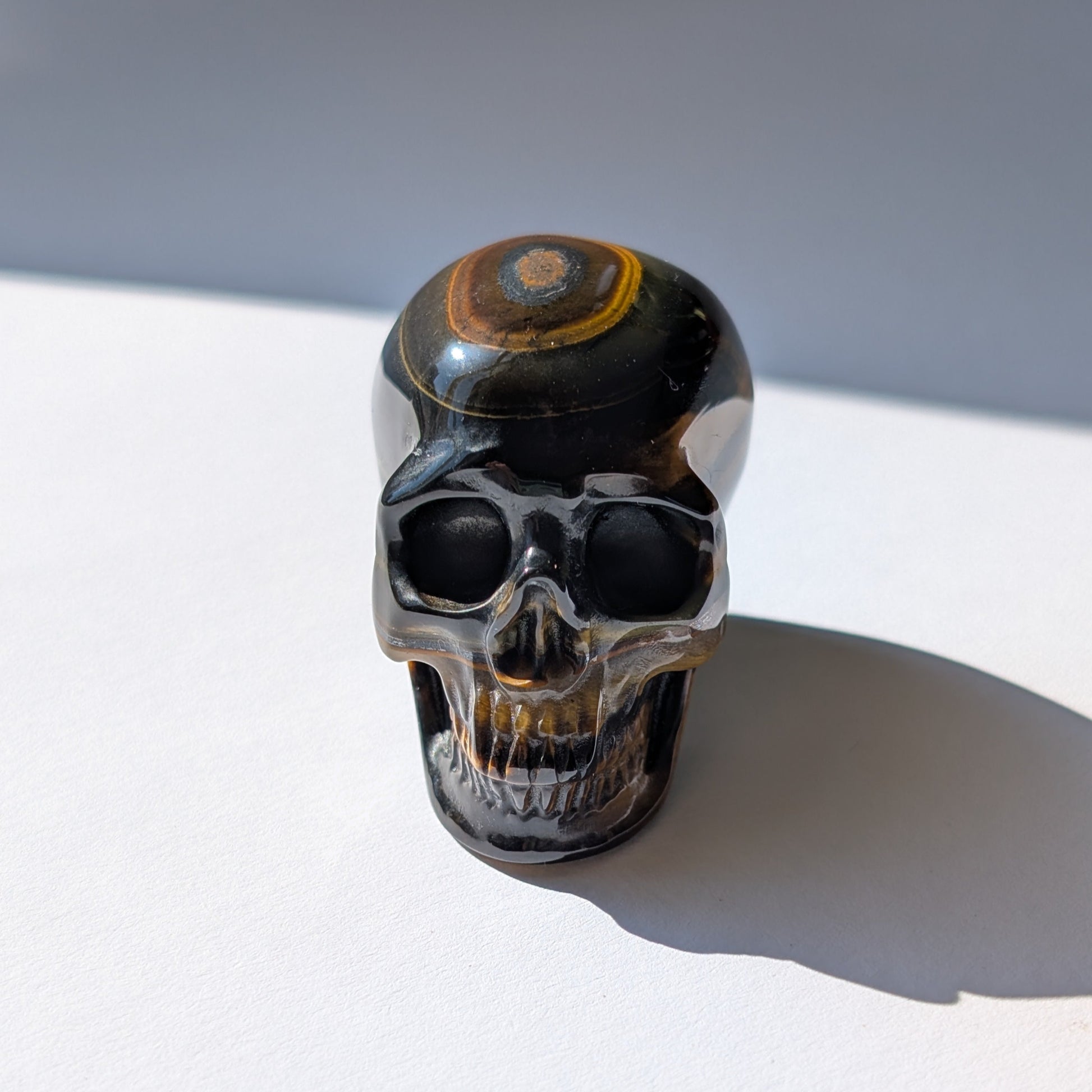 Kristallschädel "Erlin" Blau-Gold Tigerauge (92g) | Vision & Schutz