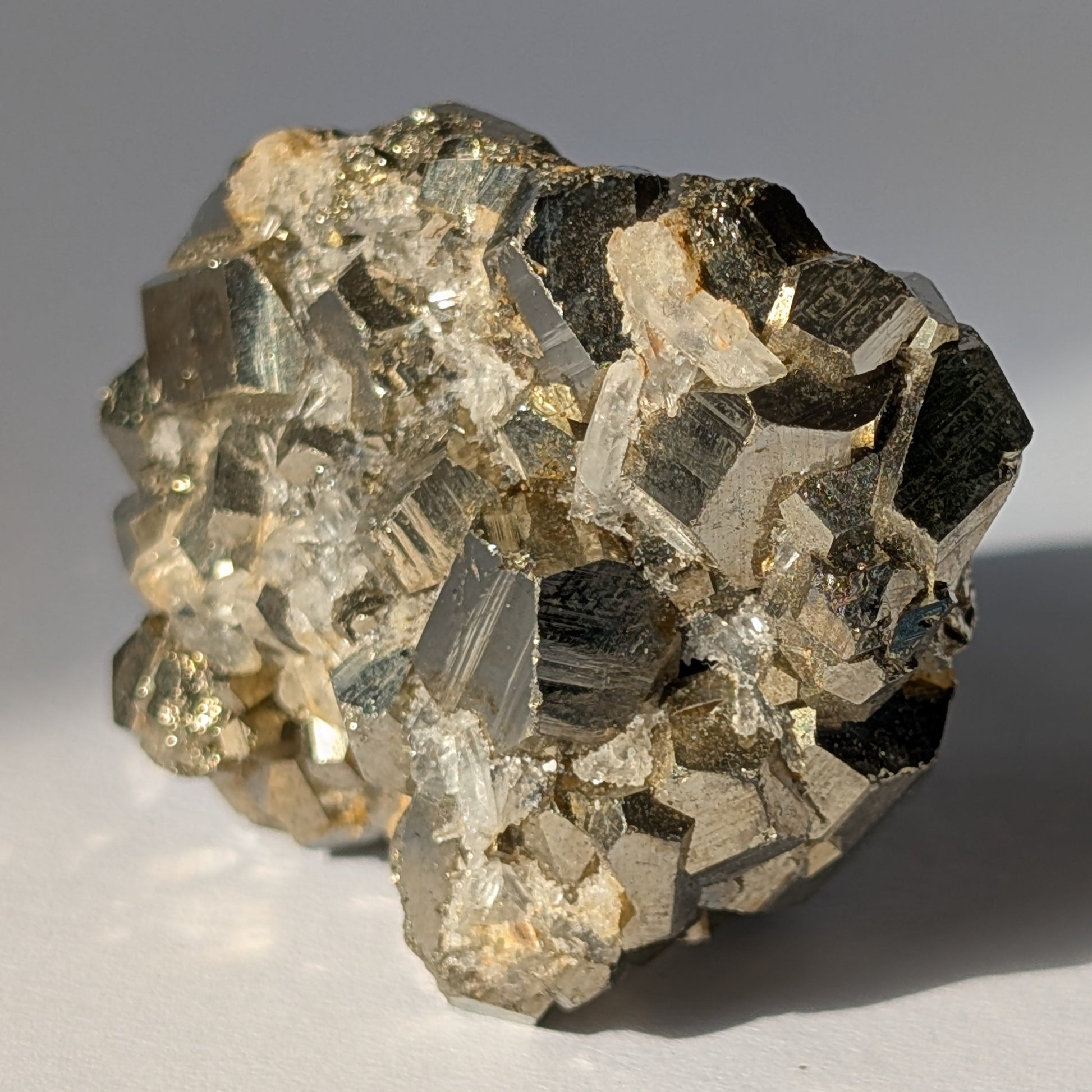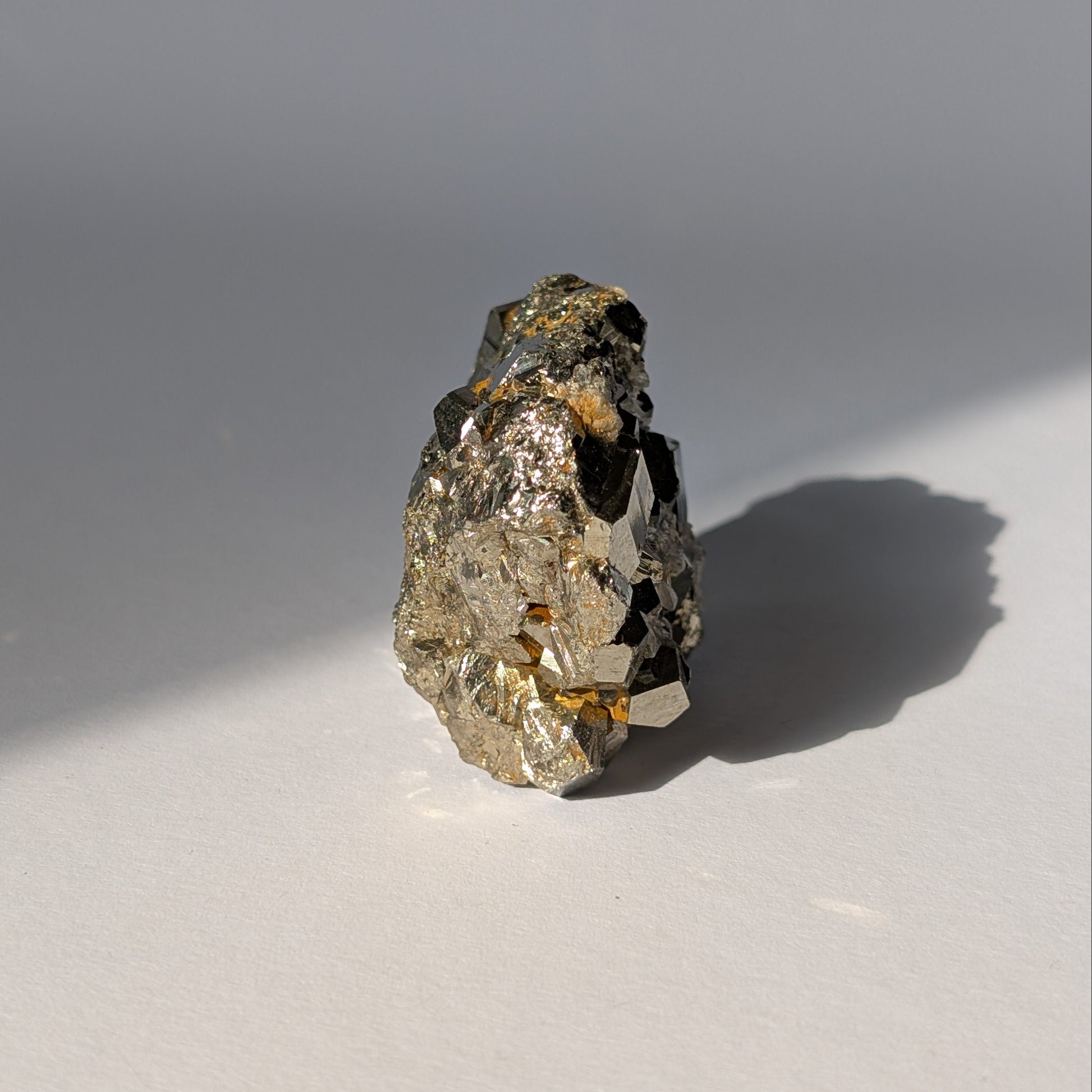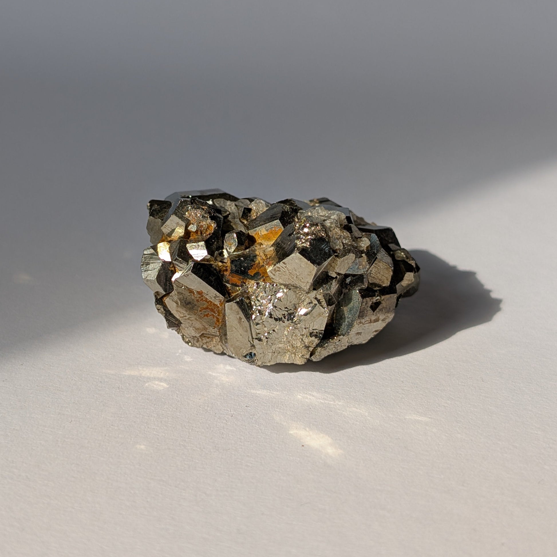 "Die Sonnen-Zitadelle" ist ein wunderschönes, natürlich gewachsenes Kristallcluster. Seine unzähligen funkelnden Facetten machen ihn zu einem idealen persönlichen Werkzeug, um die kraftvolle Energie des Pyrits für Manifestation und Schutz zu nutzen.